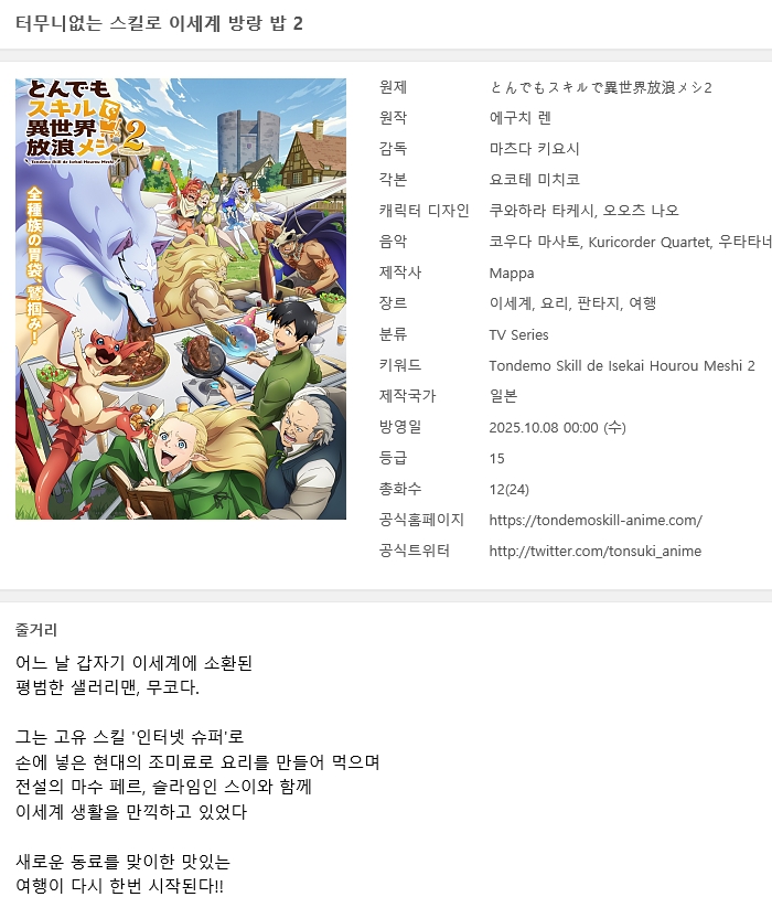 | Tondemo Skill de Isekai Hourou Meshi [2] - 12(완) ( 1280x720 ).mkv |