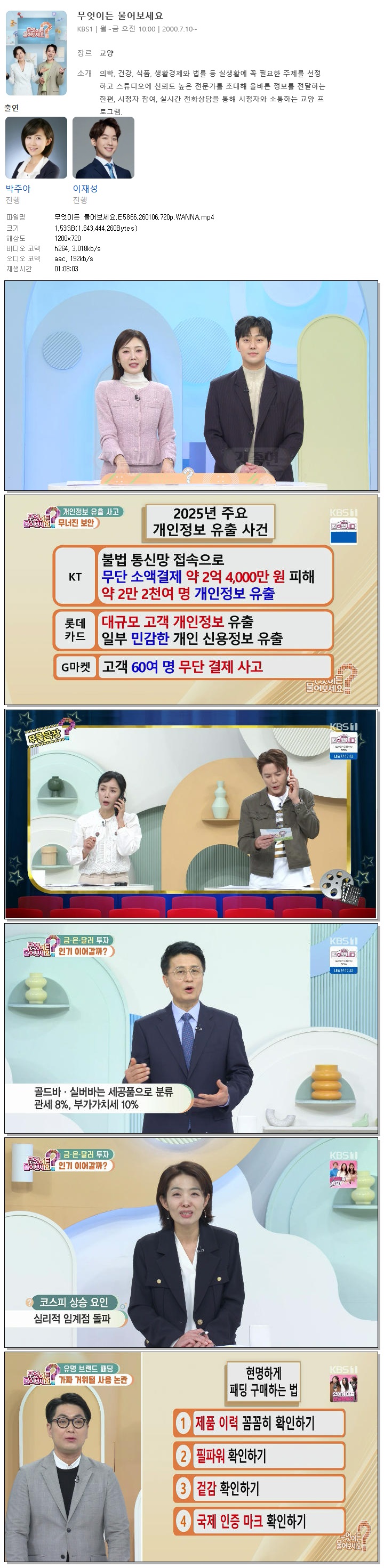 [KBS1] 무엇이든 물어보세요.E5866.260106.720p.WANNA[박주아, 이재성].mp4 1.5 G 01:08:03 1280x720