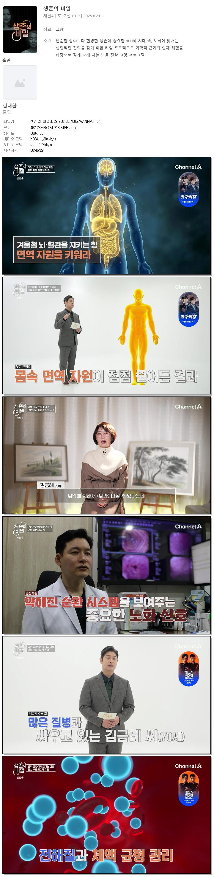 [채널A] 생존의 비밀.E29.260106.450p.WANNA[김대환].mp4 462.3 M 00:45:29 800x450