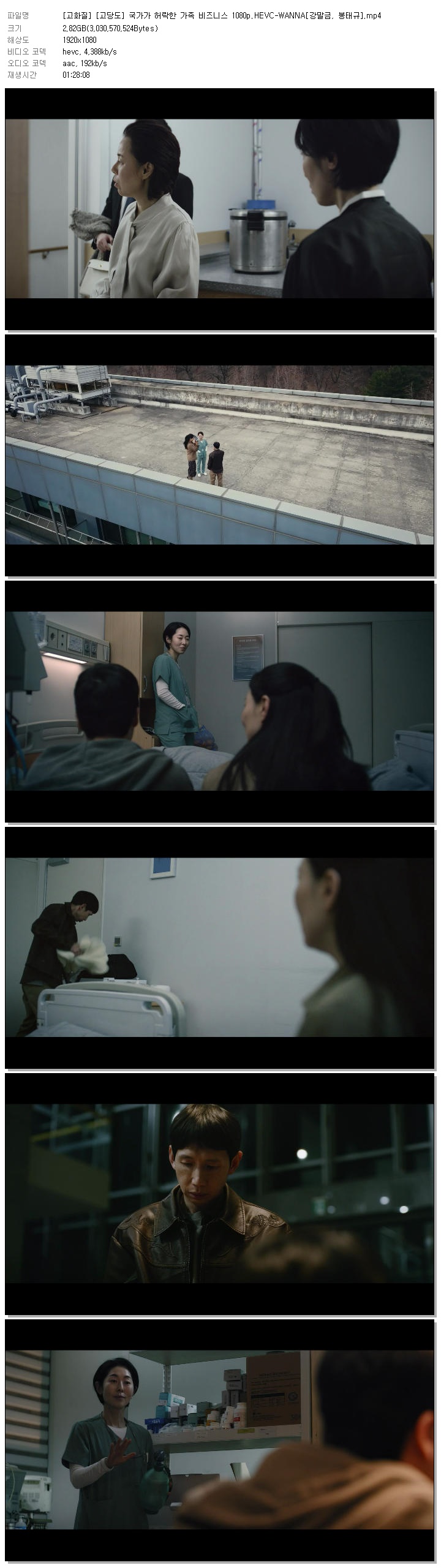 [고화질] [고당도] 국가가 허락한 가족 비즈니스 1080p.HEVC-WANNA[강말금, 봉태규].mp4 2.8 G 01:28:08 1920x1080