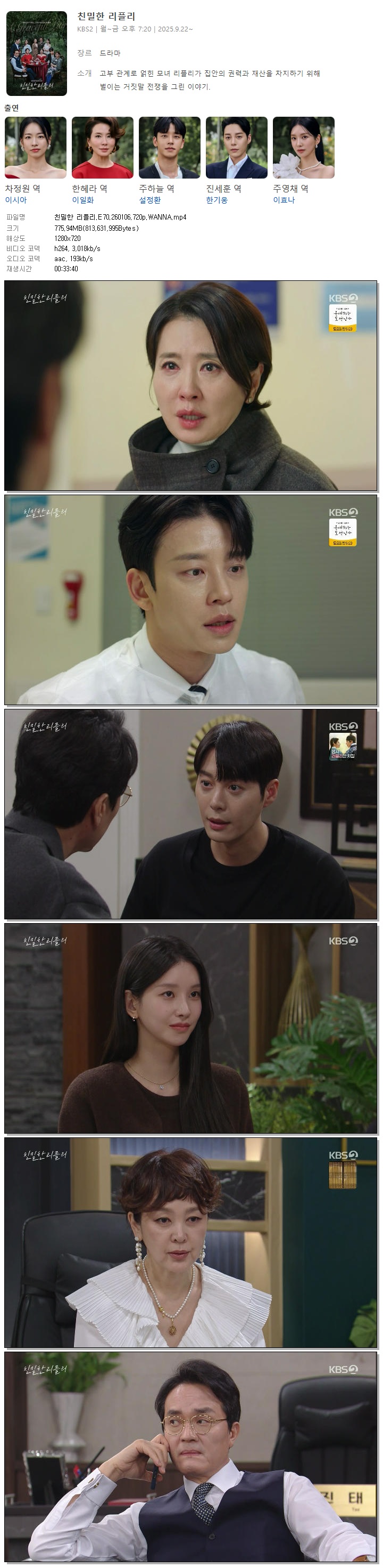 [KBS2] 친밀한 리플리.E70.260106.720p.WANNA[이시아, 이일화] 다시보기 토렌트