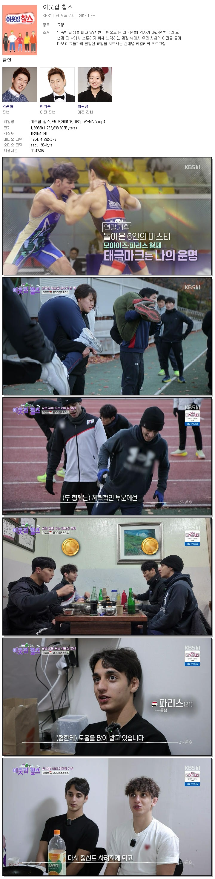 [KBS1] 이웃집 찰스.E515.260106.1080p.WANNA.mp4 1.7 G 00:47:35 1920x1080