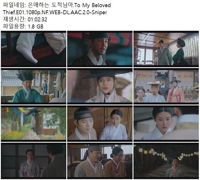 | 은애하는 도적님아.To My Beloved Thief.E01.1080p.NF.WEB-DL.AAC.2.0-Sniper.mkv | 1.8 G | - | 1920x1080 |