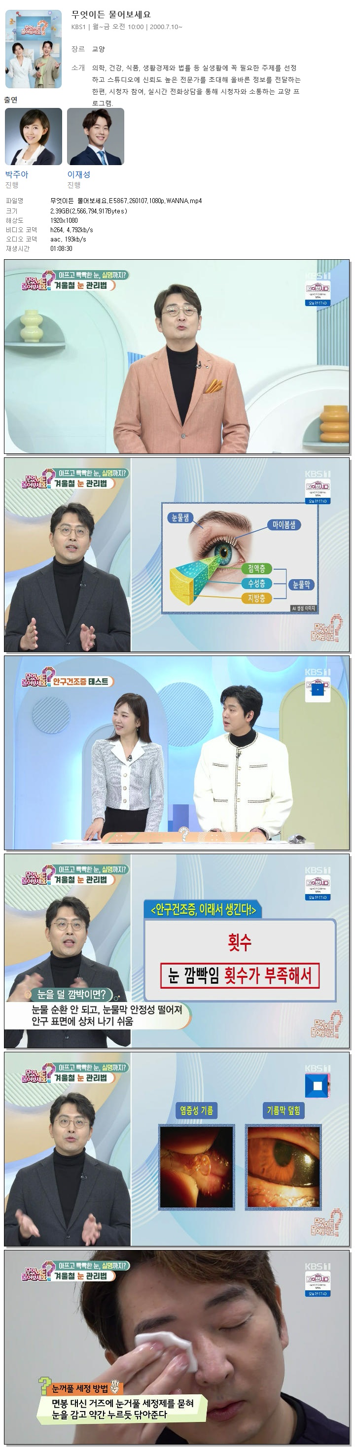 [KBS1] 무엇이든 물어보세요.E5867.260107.1080p.WANNA[박주아, 이재성].mp4 2.4 G 01:08:30 1920x1080