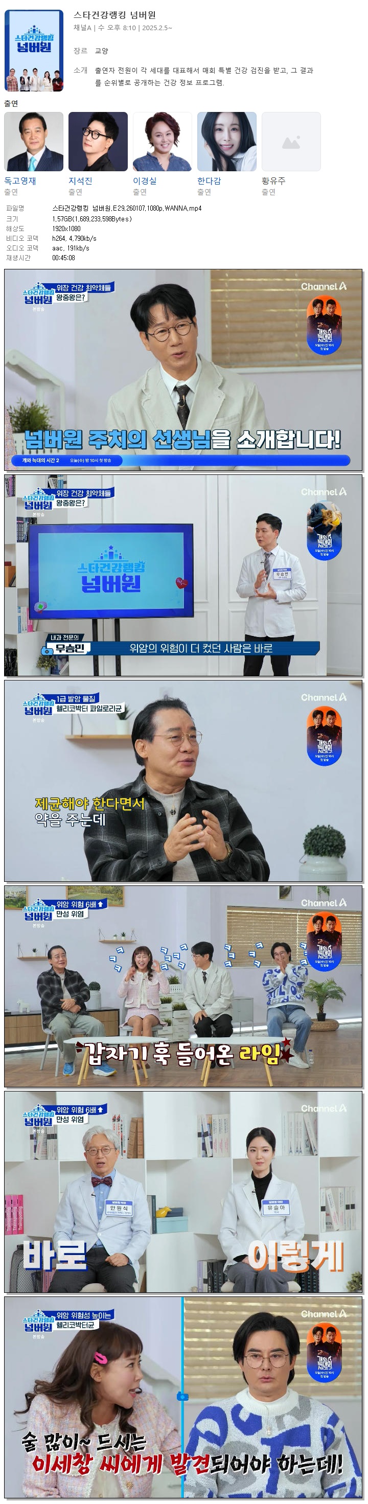 [채널A] 스타건강랭킹 넘버원.E29.260107.1080p.WANNA[지석진, 이세창] 다시보기 토렌트