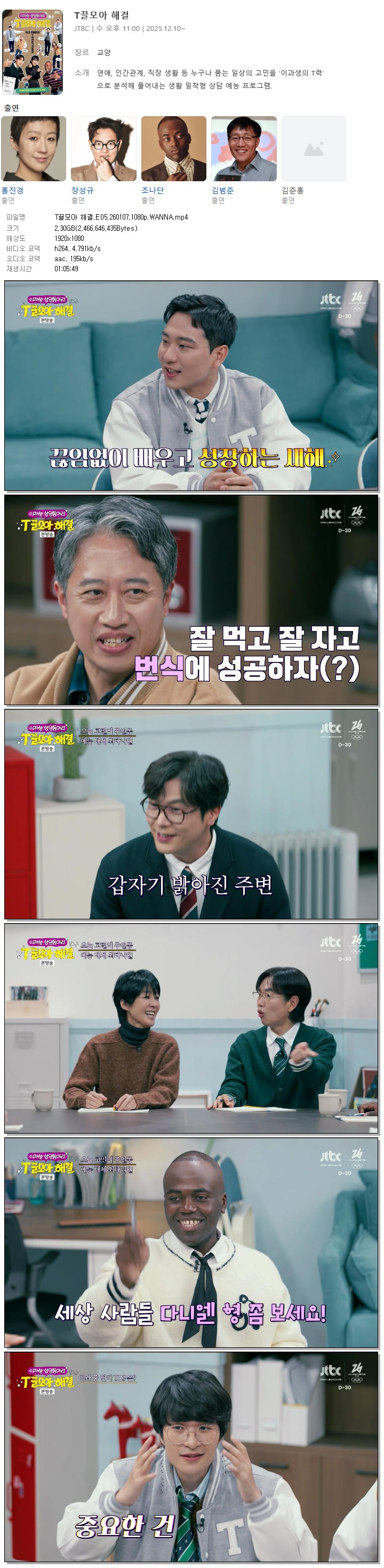 [JTBC] T끌모아 해결.E05.260107.1080p.WANNA[홍진경, 장성규] 다시보기 토렌트