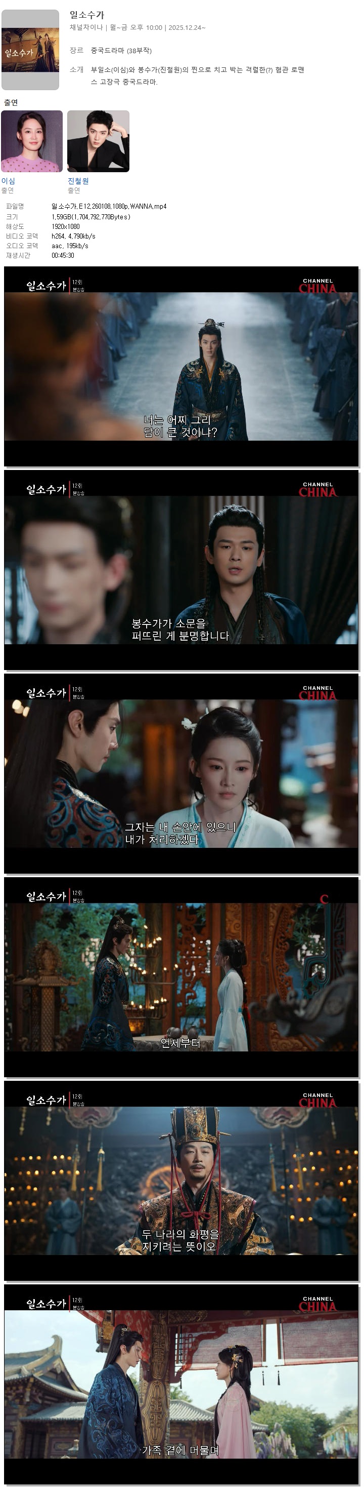 [채널차이나] 일소수가.E12.260108.1080p.WANNA[이심, 진철원] 다시보기 토렌트