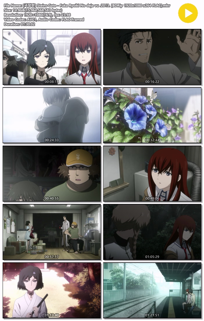 | [극장판] Steins Gate - Fuka Ryoiki No deja vu .2013. [BDRip 1920x1080 x264 FLAC].mkv | 14.9 G | 01:30:02 | 1920x1080 |