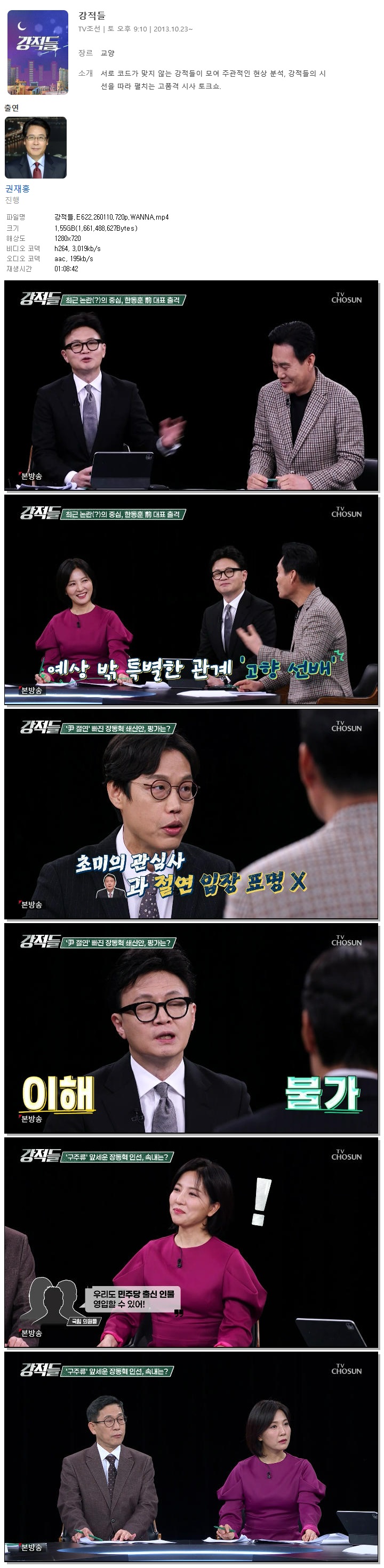 | [TV조선] 강적들.E622.260110.720p.WANNA[권재홍].mp4 | 1.5 G | 01:08:42 | 1280x720 |