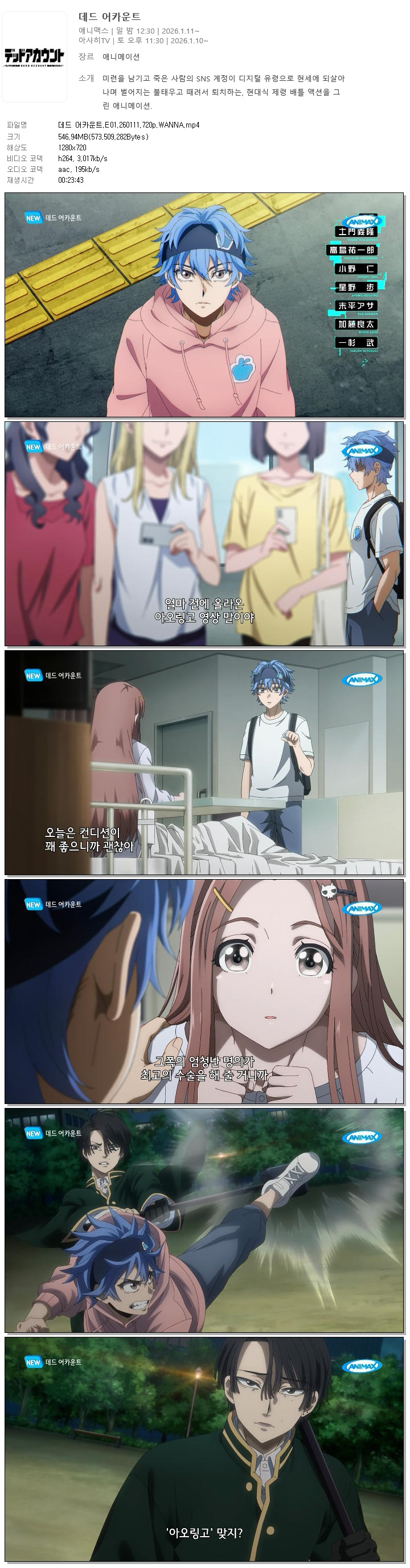데드 어카운트.E01.260111.720p.WANNA.mp4 546.9 M 00:23:43 1280x720