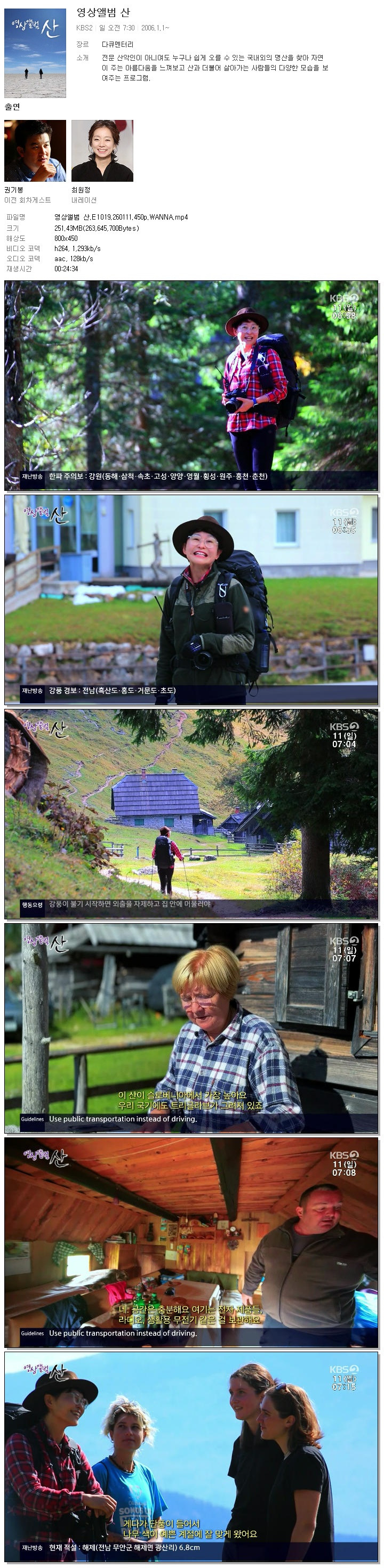 | [KBS2] 영상앨범 산.E1019.260111.450p.WANNA.mp4 | 251.4 M | 00:24:34 | 800x450 |