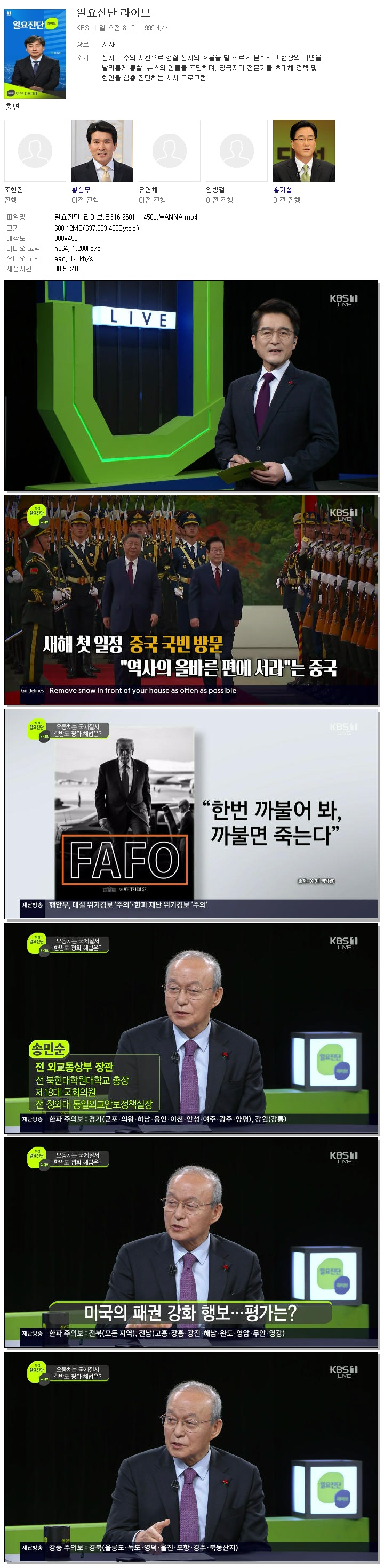 | [KBS1] 일요진단 라이브.E316.260111.450p.WANNA[김대홍].mp4 | 608.1 M | 00:59:40 | 800x450 |