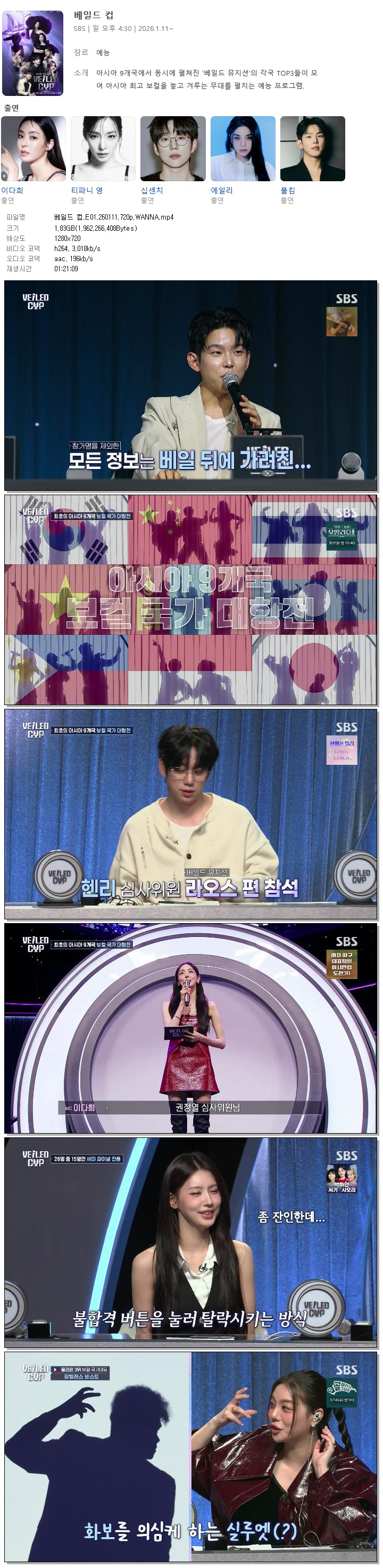 | [SBS] 베일드 컵.E01.260111.720p.WANNA[이다희, 티파니 영].mp4 | 1.8 G | 01:21:09 | 1280x720 |
