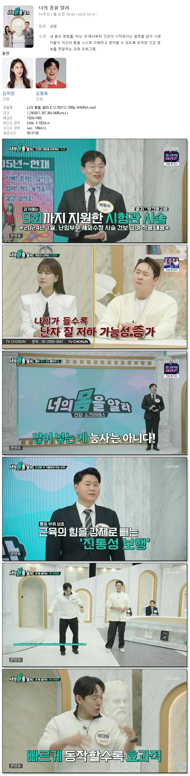 [TV조선] 너의 몸을 알라.E12.260112.1080p.WANNA[김지민, 김원효].mp4 1.3 G 00:37:00 1920x1080