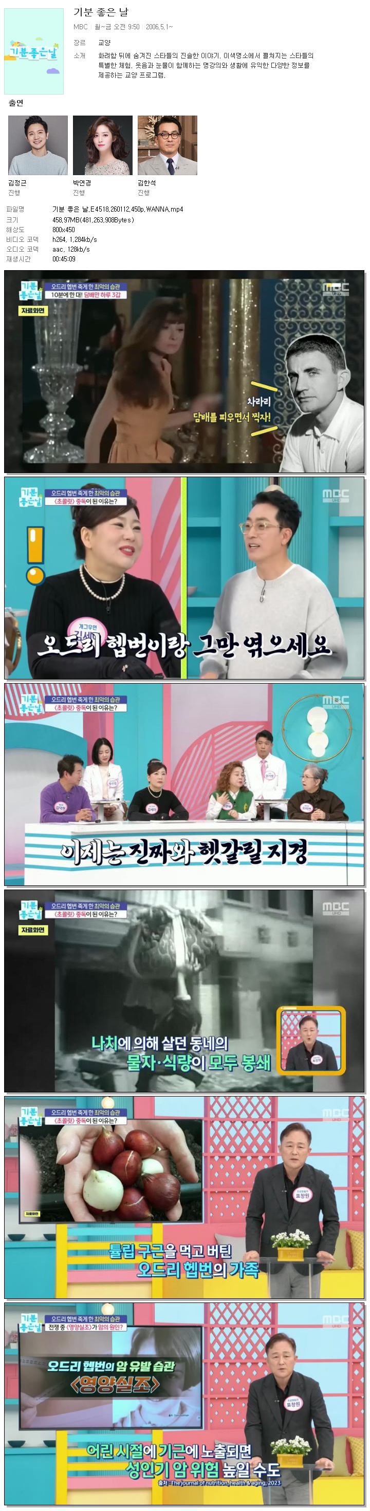 암 부르는 죽음의 습관! 방치하면 암을 키운다? 세계적인 여배우를 죽게 한 최악의 습관부터 위암을 극복하고 관리한 최고의 습관까지 기분 좋은 날에서 확인하세요~ ▶ 20년 미제사건 범인의 최후는? 모두를 공포로 몰아넣은 미제사건! 20년 만에 밝혀진 범인의 정체는? 그러나 범인은 이미 사망한 뒤라는데... 그 이유가 바로 <이것> 때문이다? 20년 만에 밝혀진 사건의 충격적인 진실은? ▶ 암, 누구도 피할 수 없다! 세계 3대 미녀 오드리 헵번, 시한부 선고를 받다? 하루 담배 3갑이나 피우고 <이것>에까지 중독되어 있던 그녀! 세기의 연인이라 불리던 오드리 헵번 그녀가 암을 피하지 못한 최악의 습관은? ▶ 암을 이겨낸 자의 최고의 습관! 암 앞에서 모두가 무너지는 것은 아니다! 사망률 80% 위암의 습격을 피한 인물이 있다? 철저한 자기 관리의 대명사 故 이병철 회장 <이것>으로 암을 관리했다는데? 임용한 역사학자와 알아보는 故 이병철 회장의 최고의 생활 습관 공개! ▶ 암이 보내는 조용한 경고, 멍울을 주의하라 몸에 생긴 <멍울>, 암의 씨앗이다? 멍울 위치에 따라 의심해야 할 암도 다른데 단순한 혹으로 착각하기 쉬운 멍울! 암인지 아닌지 구별하는 방법은?