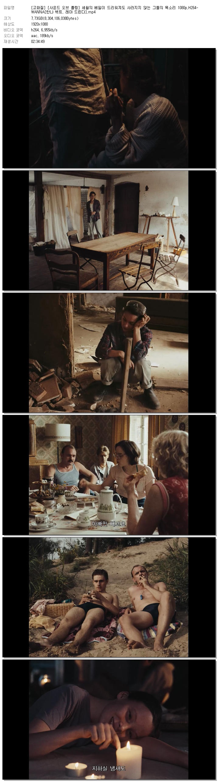 | [고화질] [사운드 오브 폴링] 세월의 베일이 드리워져도 사라지지 않는 그들의 목소리 1080p.H264-WANNA[한나 헥트, 레아 드린다].mp4 | 7.7 G | 02:34:49 | 1920x1080 |