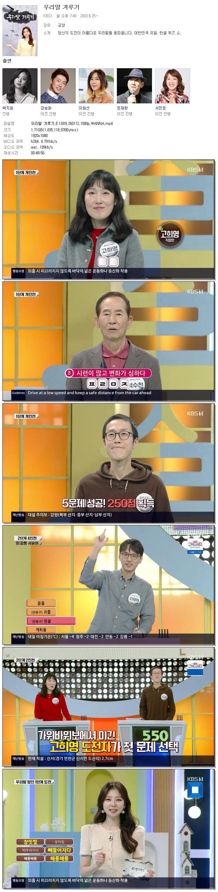 [KBS1] 우리말 겨루기.E1089.260112.1080p.WANNA[박지원].mp4 1.7 G 00:48:56 1920x1080
