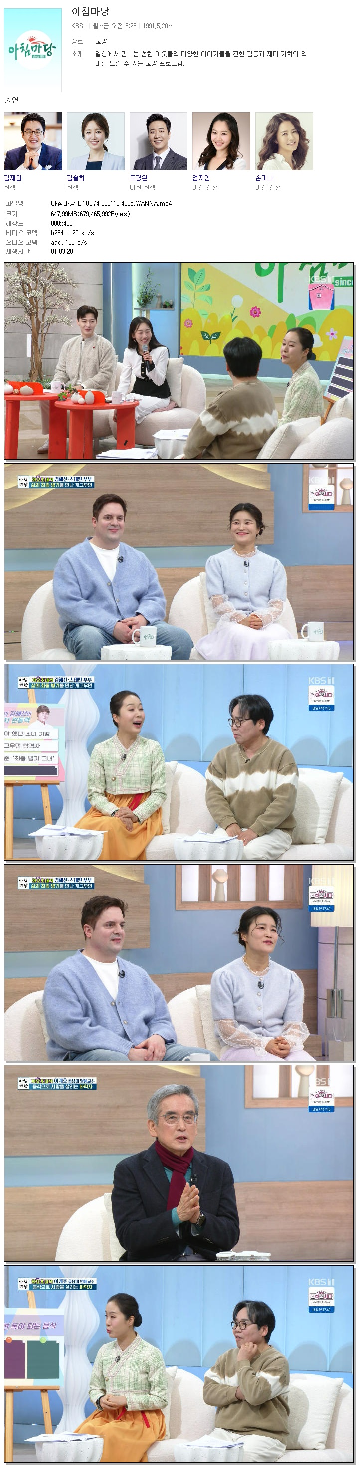 [KBS1] 아침마당.E10074.260113.450p.WANNA[엄지인, 박철규].mp4 648 M 01:03:28 800x450