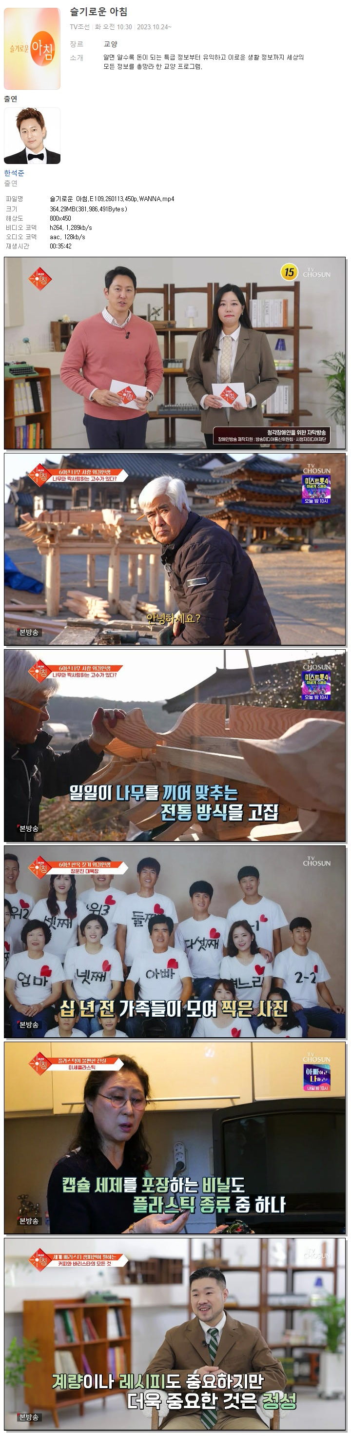| [TV조선] 슬기로운 아침.E109.260113.450p.WANNA[한석준, 이진희].mp4 | 364.3 M | 00:35:42 | 800x450 |
