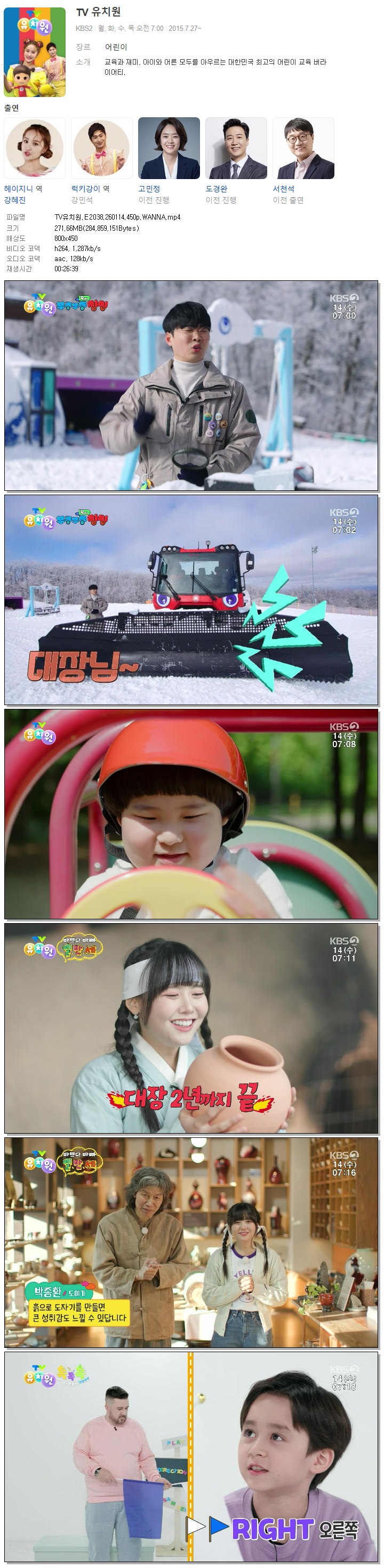 | [KBS2] TV유치원.E2038.260114.450p.WANNA.mp4 | 271.7 M | 00:26:39 | 800x450 |