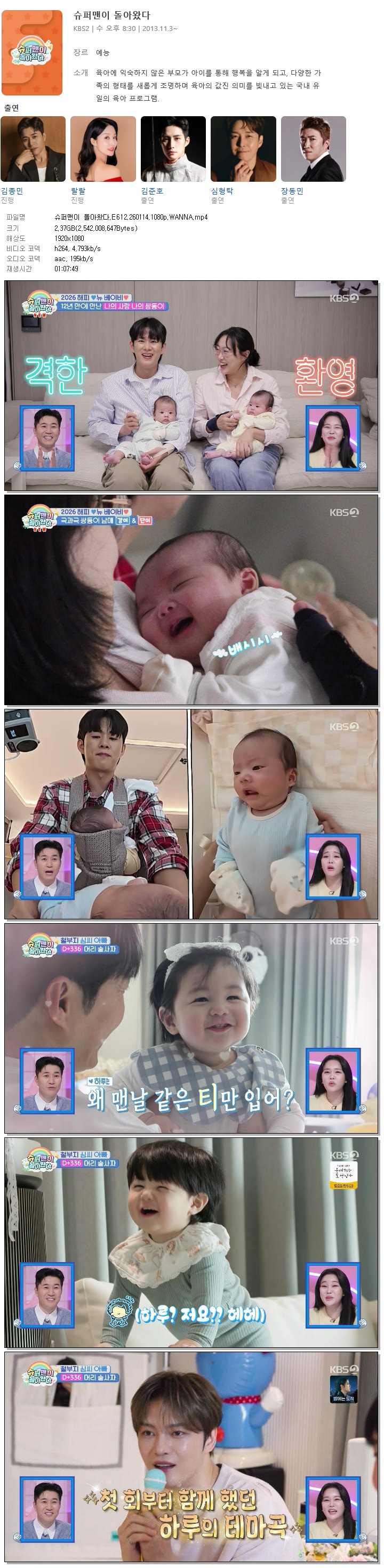 | [KBS2] 슈퍼맨이 돌아왔다.E612.260114.1080p.WANNA[심형탁, 손민수].mp4 | 2.4 G | 01:07:49 | 1920x1080 |