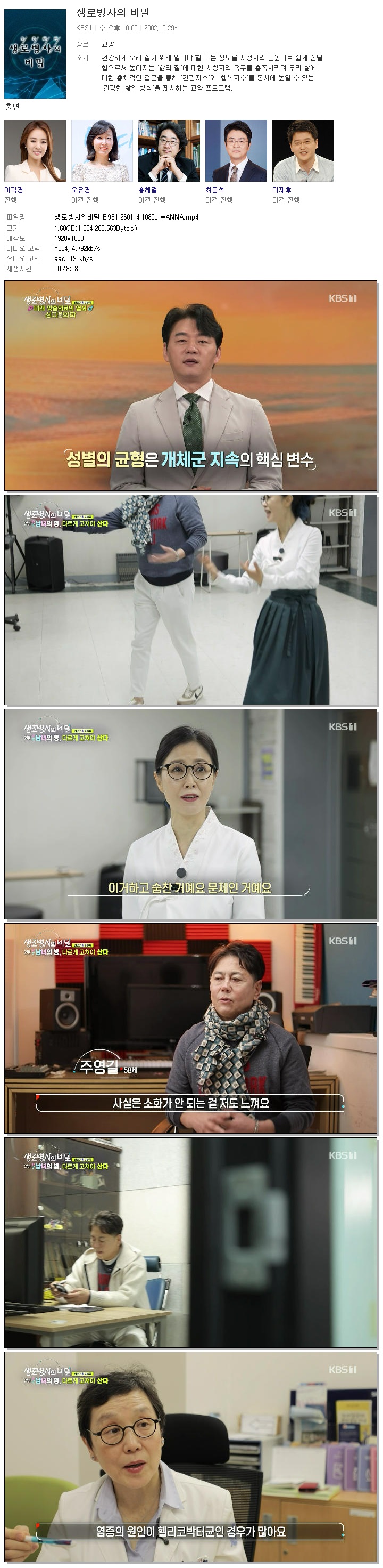[KBS1] 생로병사의비밀.E981.260114.1080p.WANNA.mp4 1.7 G 00:48:08 1920x1080