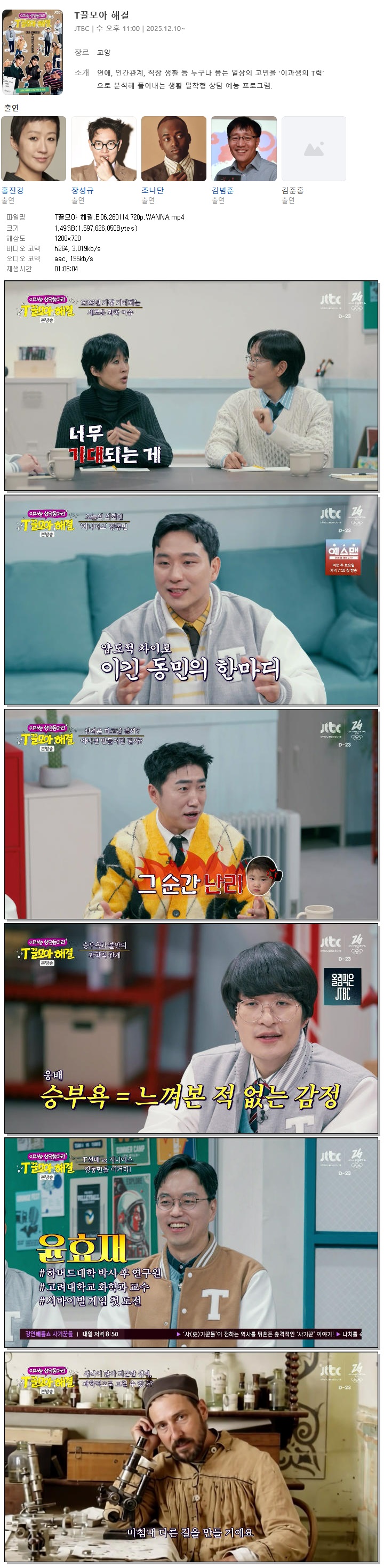 [JTBC] T끌모아 해결.E06.260114.720p.WANNA[홍진경, 장성규].mp4 1.5 G 01:06:04 1280x720