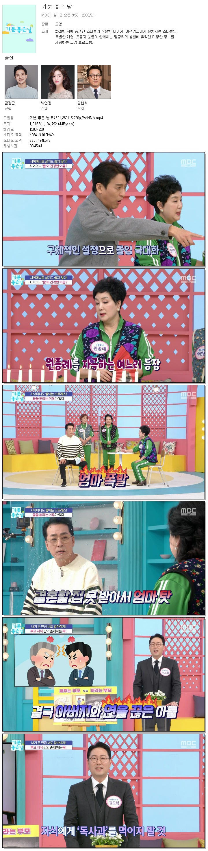 | [MBC] 기분 좋은 날.E4521.260115.720p.WANNA[서인, 박연경].mp4 | 1 G | 00:45:41 | 1280x720 |