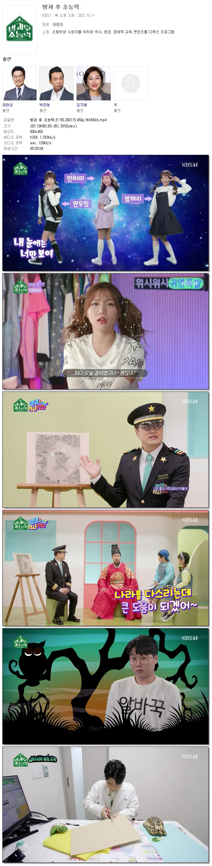 | [KBS1] 방과 후 초능력.E190.260115.450p.WANNA.mp4 | 287.1 M | 00:28:04 | 800x450 |
