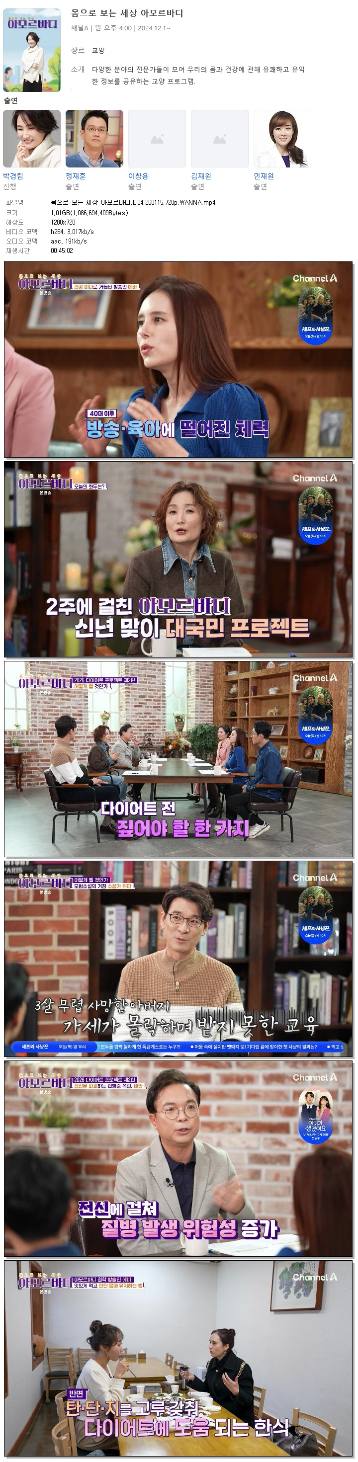 | [채널A] 몸으로 보는 세상 아모르바디.E34.260115.720p.WANNA[박경림].mp4 | 1 G | 00:45:02 | 1280x720 |