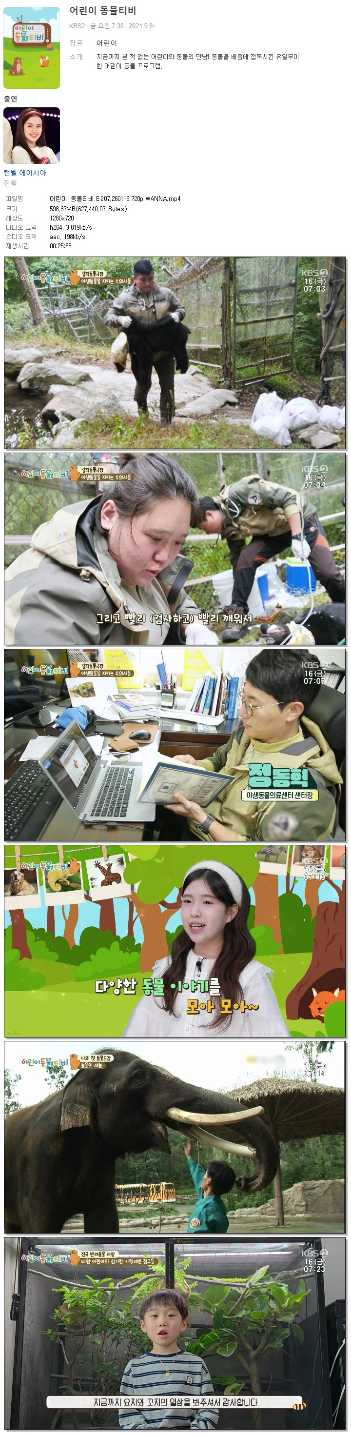 | [KBS2] 어린이 동물티비.E207.260116.720p.WANNA[캠벨 에이시아].mp4 | 598.4 M | 00:25:55 | 1280x720 |