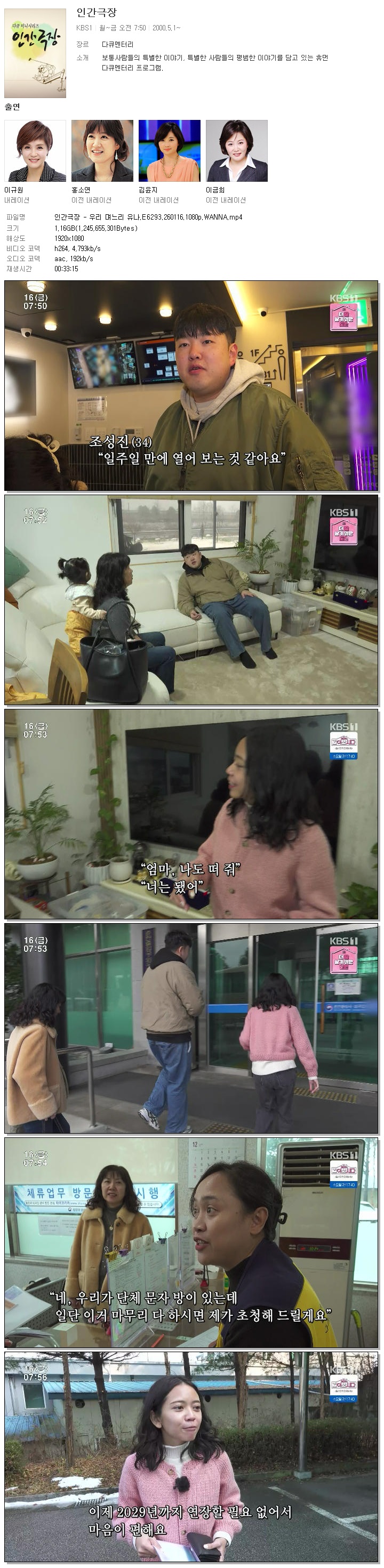 [KBS1] 인간극장.E6293.260116.1080p.WANNA.mp4 1.2 G 00:33:15 1920x1080