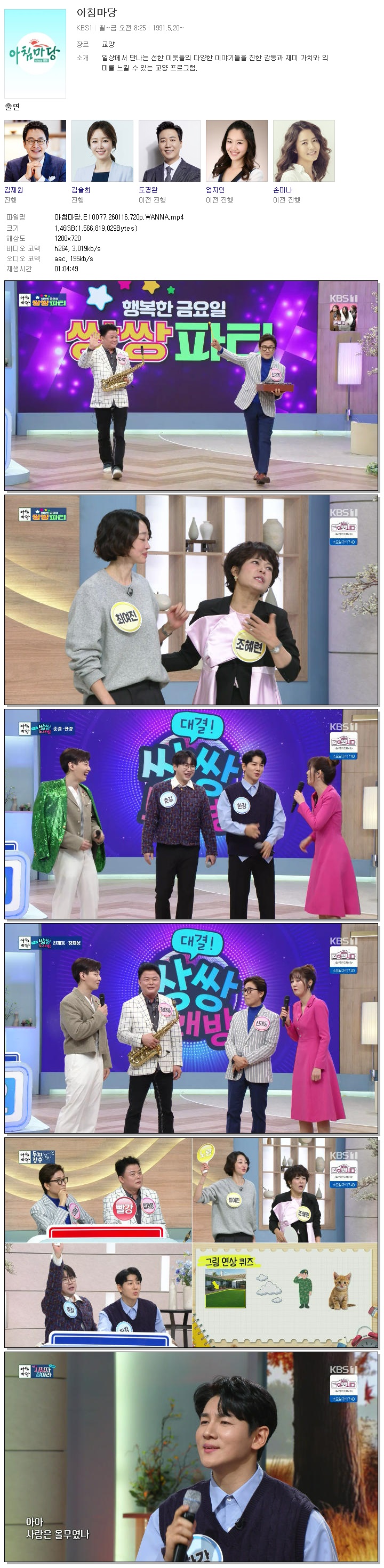 [KBS1] 아침마당.E10077.260116.720p.WANNA[엄지인, 박철규].mp4 1.5 G 01:04:49 1280x720