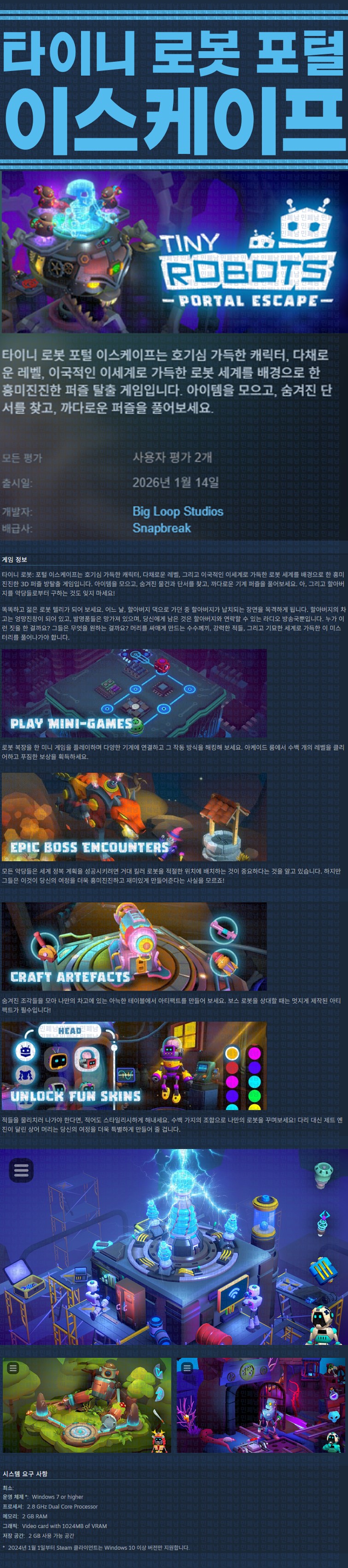[한글무설치] 타이니 로봇 포털 이스케이프 v20260114 다시보기 토렌트
