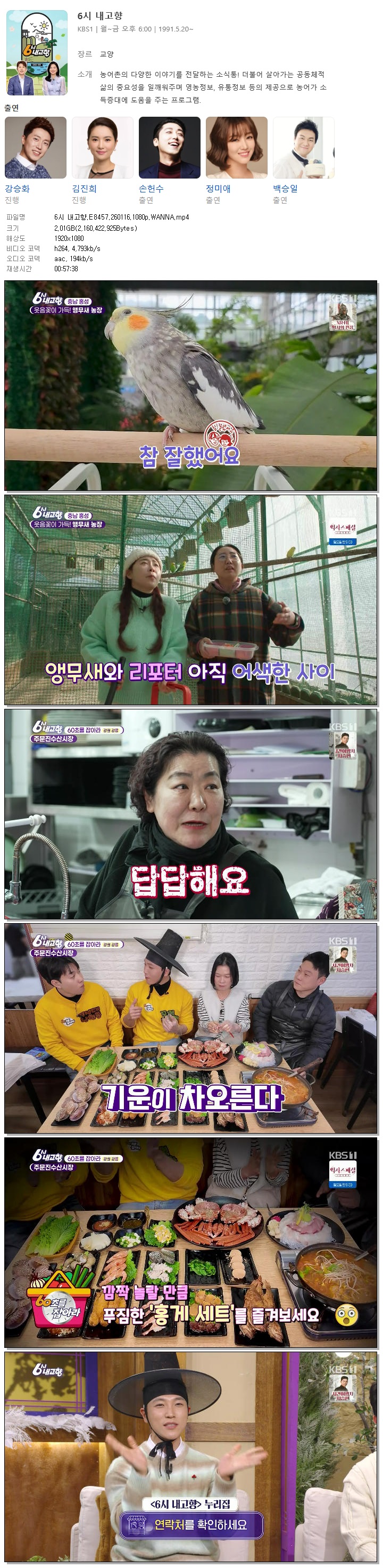 [KBS1] 6시 내고향.E8457.260116.1080p.WANNA[강승화, 김진희].mp4 2 G 00:57:38 1920x1080