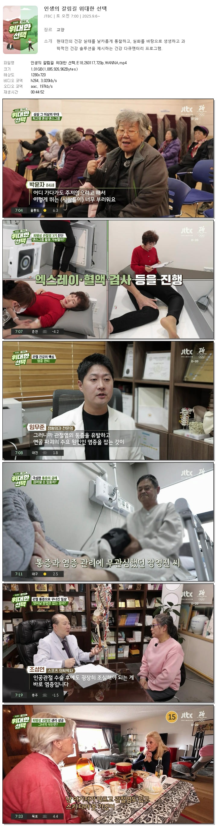 [JTBC] 인생의 갈림길 위대한 선택.E18.260117.720p.WANNA.mp4 1 G 00:44:52 1280x720