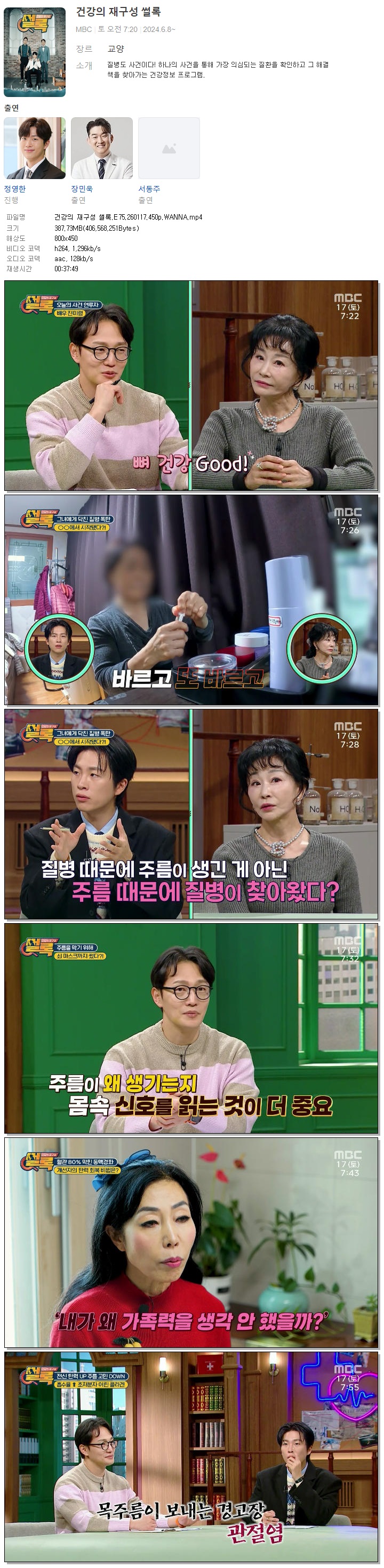 | [MBC] 건강의 재구성 썰록.E75.260117.450p.WANNA[정영한].mp4 | 387.7 M | 00:37:49 | 800x450 |