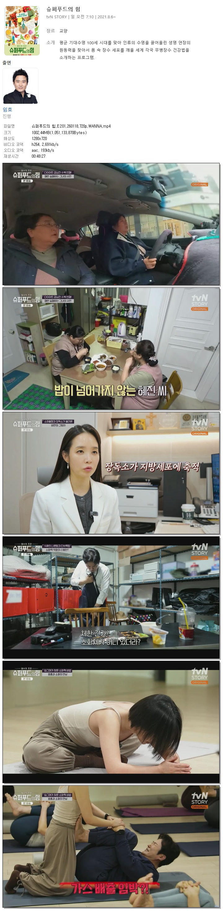 | [TVN STORY] 슈퍼푸드의 힘.E201.260118.720p.WANNA[임호].mp4 | 1002.4 M | 00:48:27 | 1280x720 |