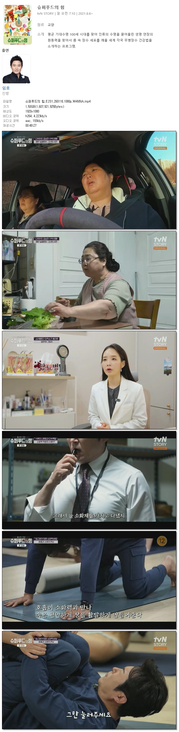 | [TVN STORY] 슈퍼푸드의 힘.E201.260118.1080p.WANNA[임호].mp4 | 1.5 G | 00:48:27 | 1920x1080 |