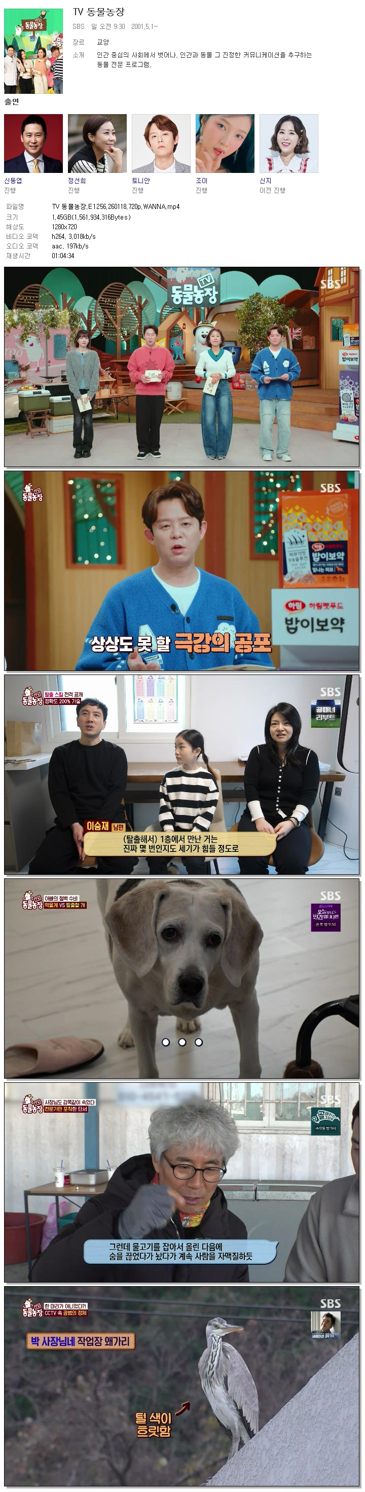 [SBS] TV 동물농장.E1256.260118.720p.WANNA[신동엽, 정선희] 다시보기 토렌트