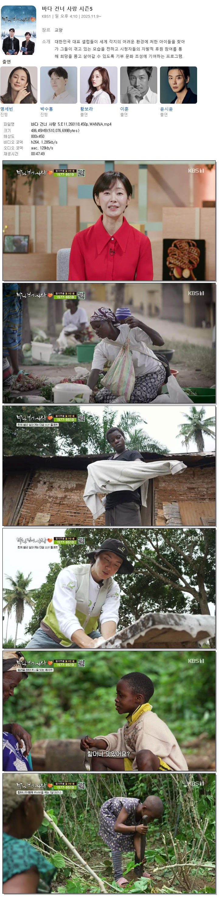 | [KBS1] 바다 건너 사랑 5.E11.260118.450p.WANNA.mp4 | 486.4 M | 00:47:49 | 800x450 |
