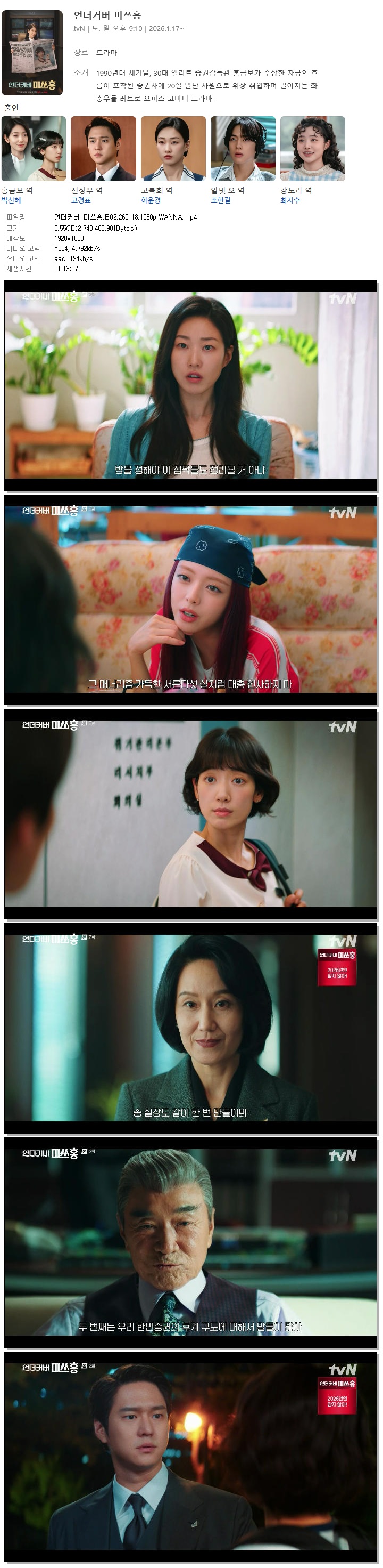 [TVN] 언더커버 미쓰홍.E02.260118.1080p.WANNA[박신혜, 고경표] 다시보기 토렌트