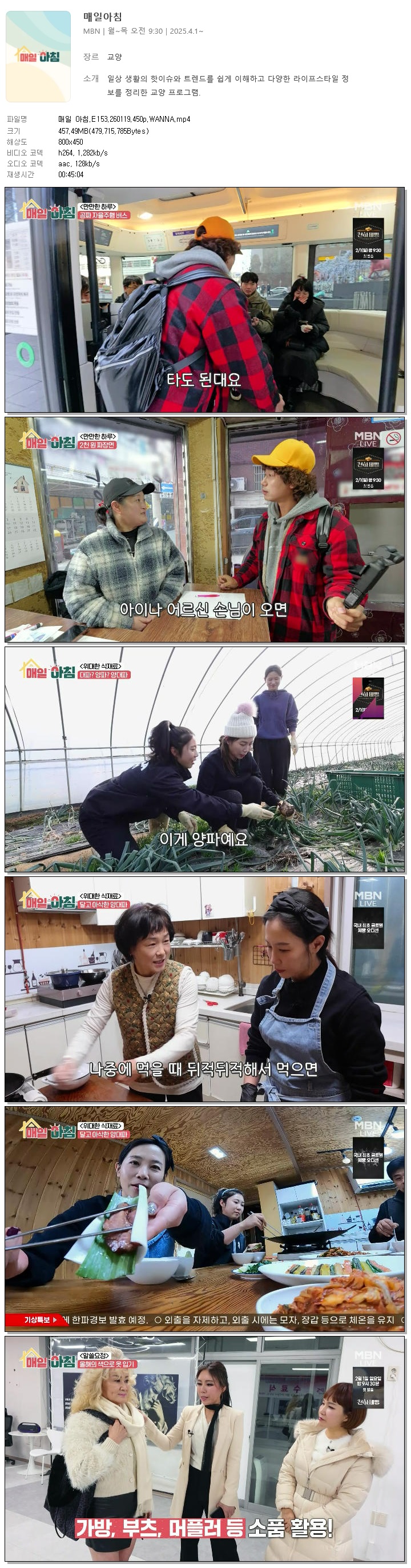 [MBN] 매일 아침.E153.260119.450p.WANNA[한혜원, 이정수].mp4 457.5 M 00:45:04 800x450