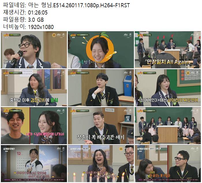 | 아는 형님.E514.260117.1080p.H264-F1RST.mp4 | 3 G | - | 1920x1080 |
