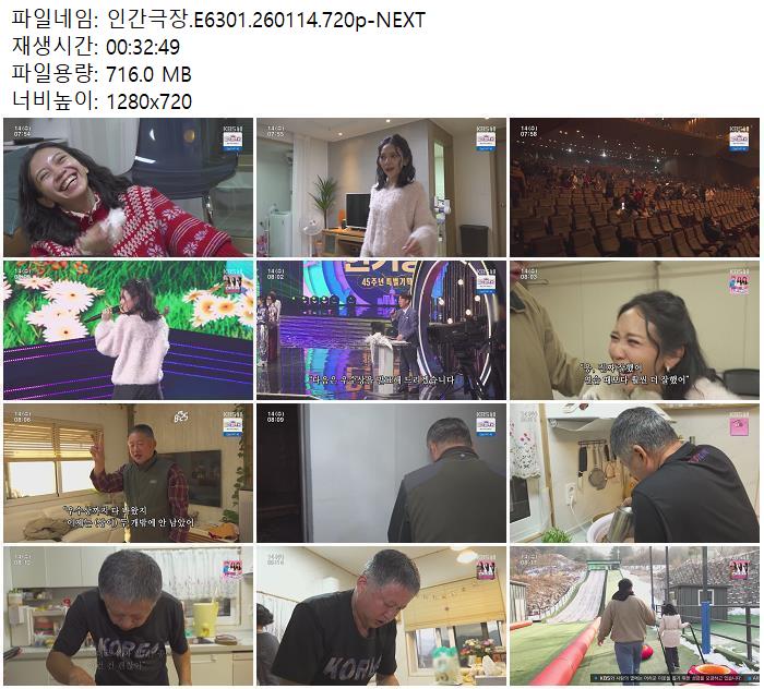| 인간극장.E6301.260114.720p-NEXT.mp4 | 716 M | - | 1280x720 |