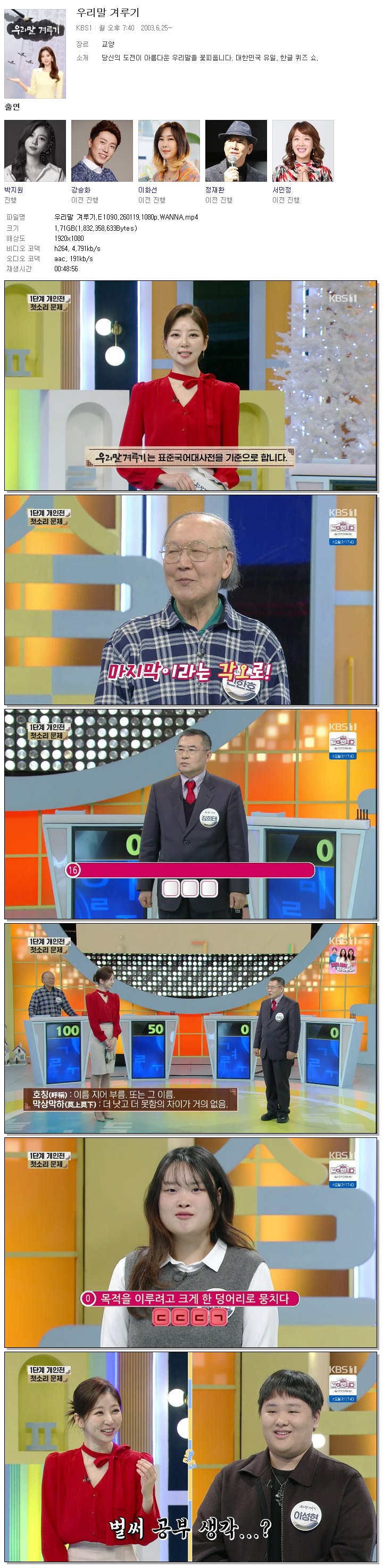 [KBS1] 우리말 겨루기.E1090.260119.1080p.WANNA[박지원] 다시보기 토렌트