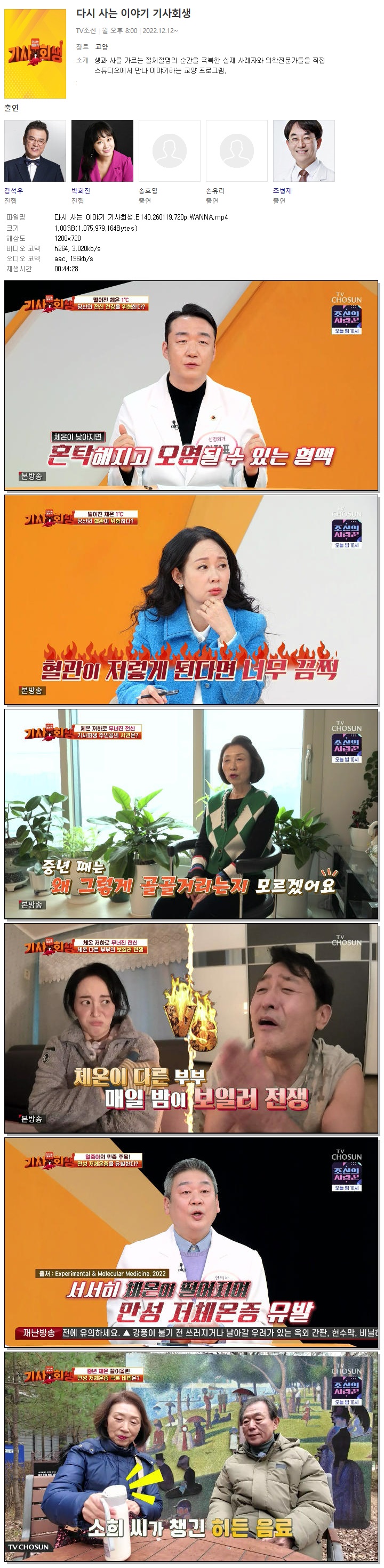 | [TV조선] 다시 사는 이야기 기사회생.E140.260119.720p.WANNA[강석우, 박희진].mp4 | 1 G | 00:44:28 | 1280x720 |