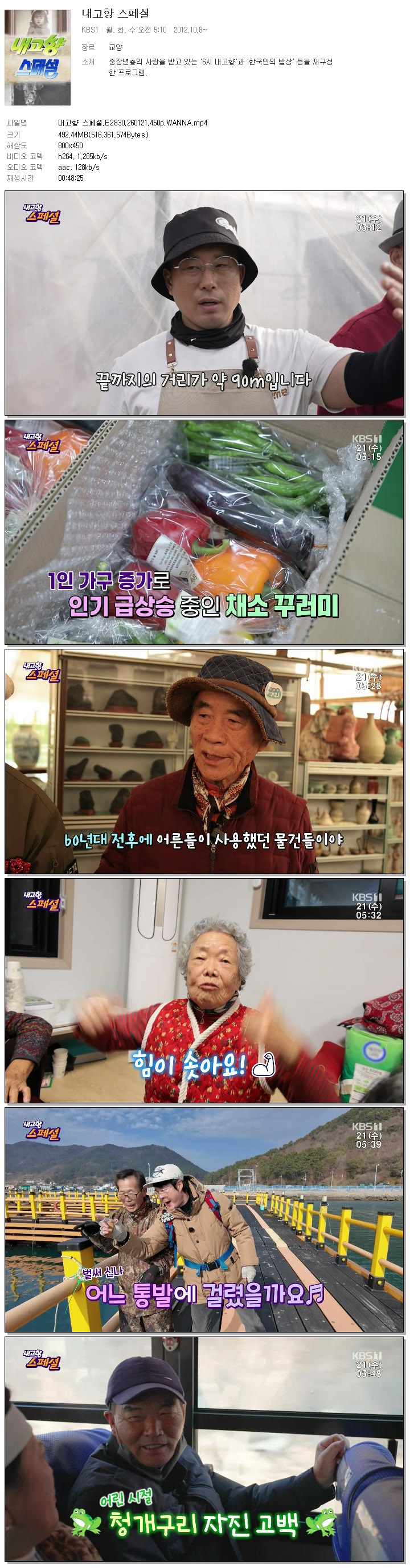| [KBS1] 내고향 스페셜.E2830.260121.450p.WANNA.mp4 | 492.4 M | 00:48:25 | 800x450 |