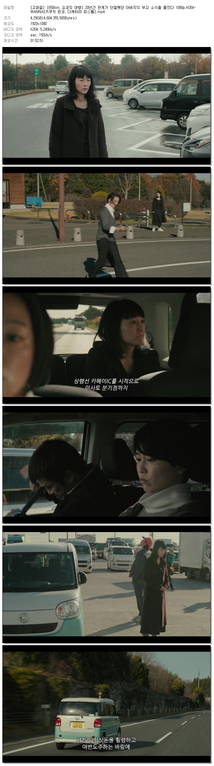 [고화질] [658km, 요코의 여행] 20년간 관계가 단절됐던 아버지의 부고 소식을 들었다 1080p.H264-WANNA[키쿠치 린코, 다케하라 피스톨].mp4 4.3 G 01:52:51 1920x1080