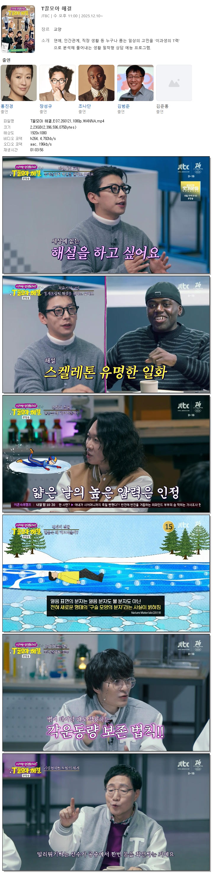 | [JTBC] T끌모아 해결.E07.260121.1080p.WANNA[홍진경, 장성규].mp4 | 2.2 G | 01:03:56 | 1920x1080 |